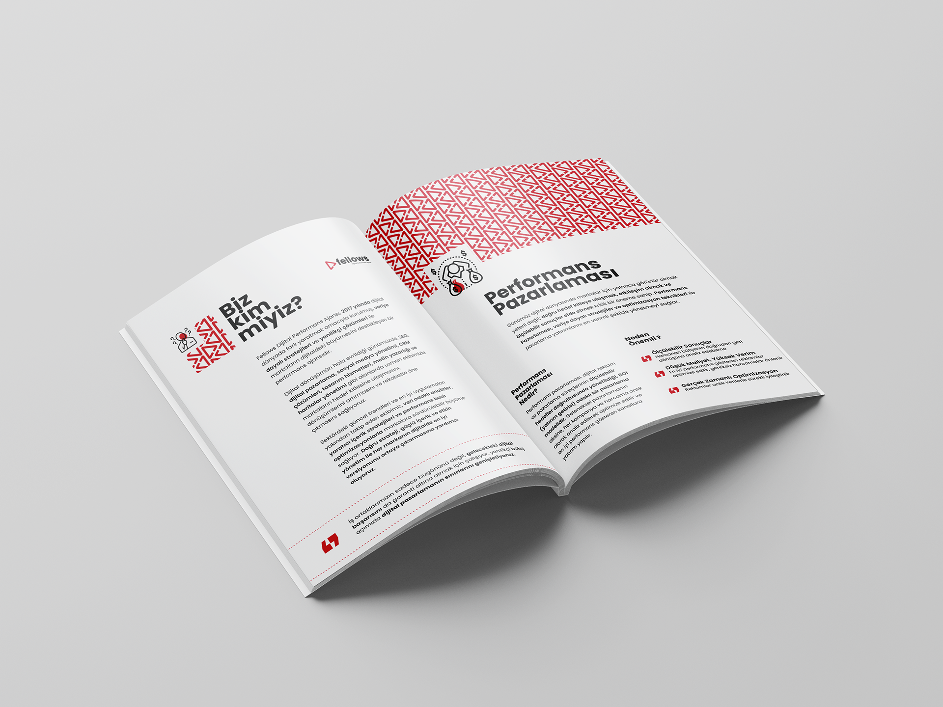 The visual language integrates both modern digital aesthetics and timeless design principles, symbolizing Fellows’ dual expertise in online and offline communication channels. From SEO and CRM to copywriting and media planning, the catalog highlights the agency’s full-service capabilities in a bold yet refined layout.